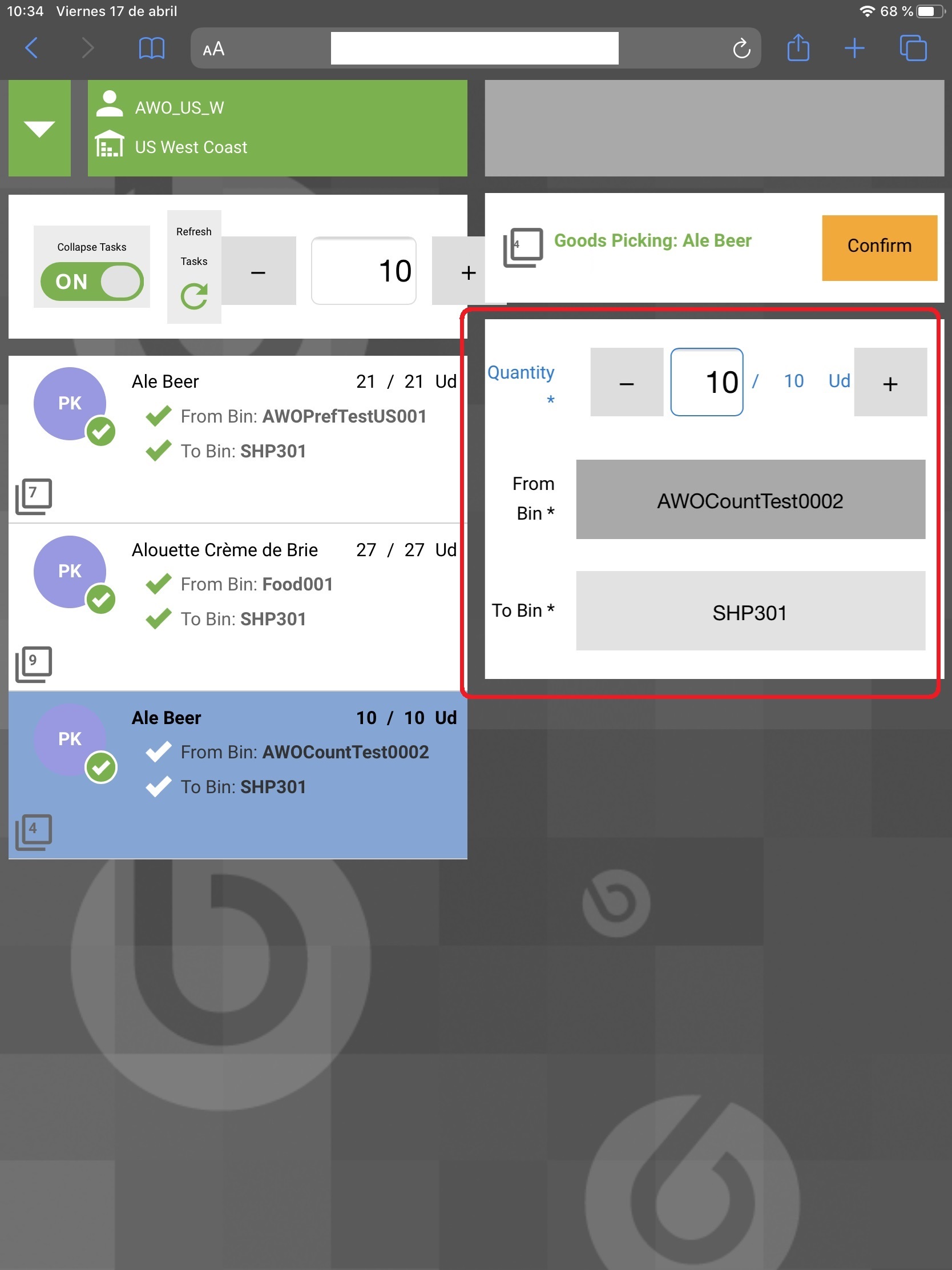 | defect | [Retail Modules] Mobile Warehouse operations | trivial | always | 2020-04-20 12:09 | 2023-02-17 09:46 | |||||||