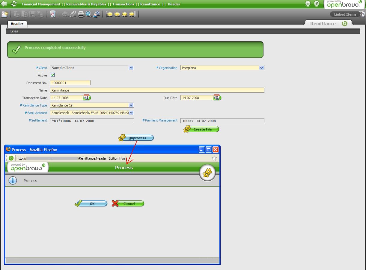 | Description | I have a processed Remittance. Then I choose on the "Unprocess" button to reactivate it. Note that the opening window is labeled "Process" instead of "Unprocess" | ||||||||||