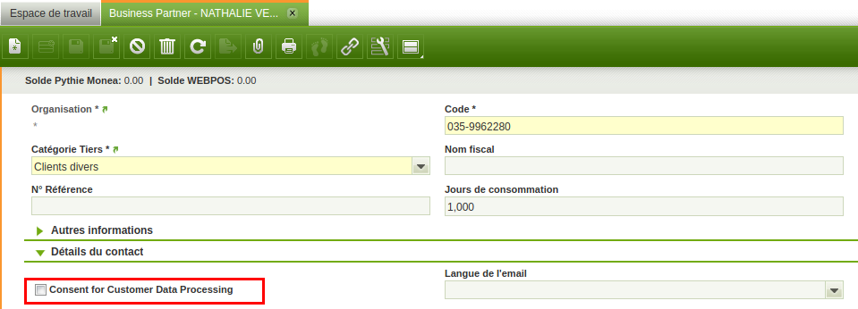 *Go to window Business Partner, see that the field "Consent for Customer data Processing" is not translated (as in the image attached )