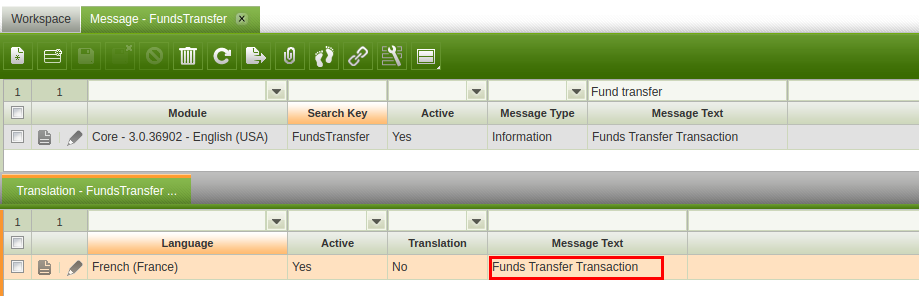 | Steps To Reproduce | BACKOFFICE: *login as System administrator *Check message FundsTransfer, french translation is available but not translated | ||||||||||