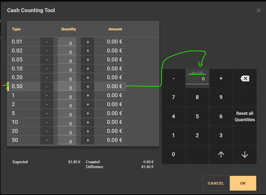 | Description | Cash Up On the numeric panel, the label to describe current counted item is too small, Cashup / Safebox - Outil de comptage des espèces - Sur le pavé numérique, le texte au dessus du montant saisi ne sert à rien car illisible : à enlever | |||||||