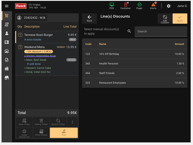 2. Create an order and open "Order Discounts" window (order discounts or line discount)