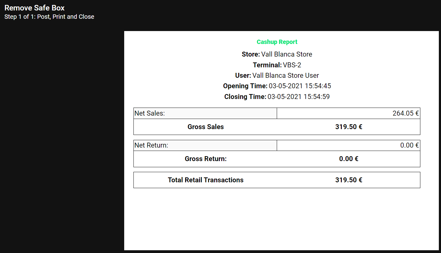| Summary | 0046468: JIRA 1803 - Cash up - Safe Boxes : changes needed on the cashup report | |||||||