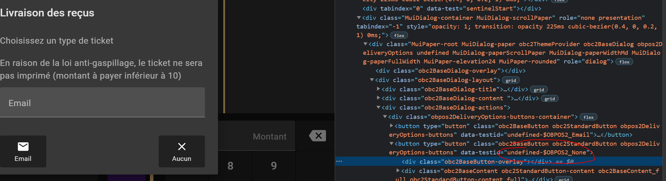 | Steps To Reproduce | Configure the send by mail popup to appear (in agapes.test it is already working). Log in in the new pos. Do an order, let the send by mail apppear. Open chrome developers tools and see that the data-test-id is not fulfilled. | |||||||