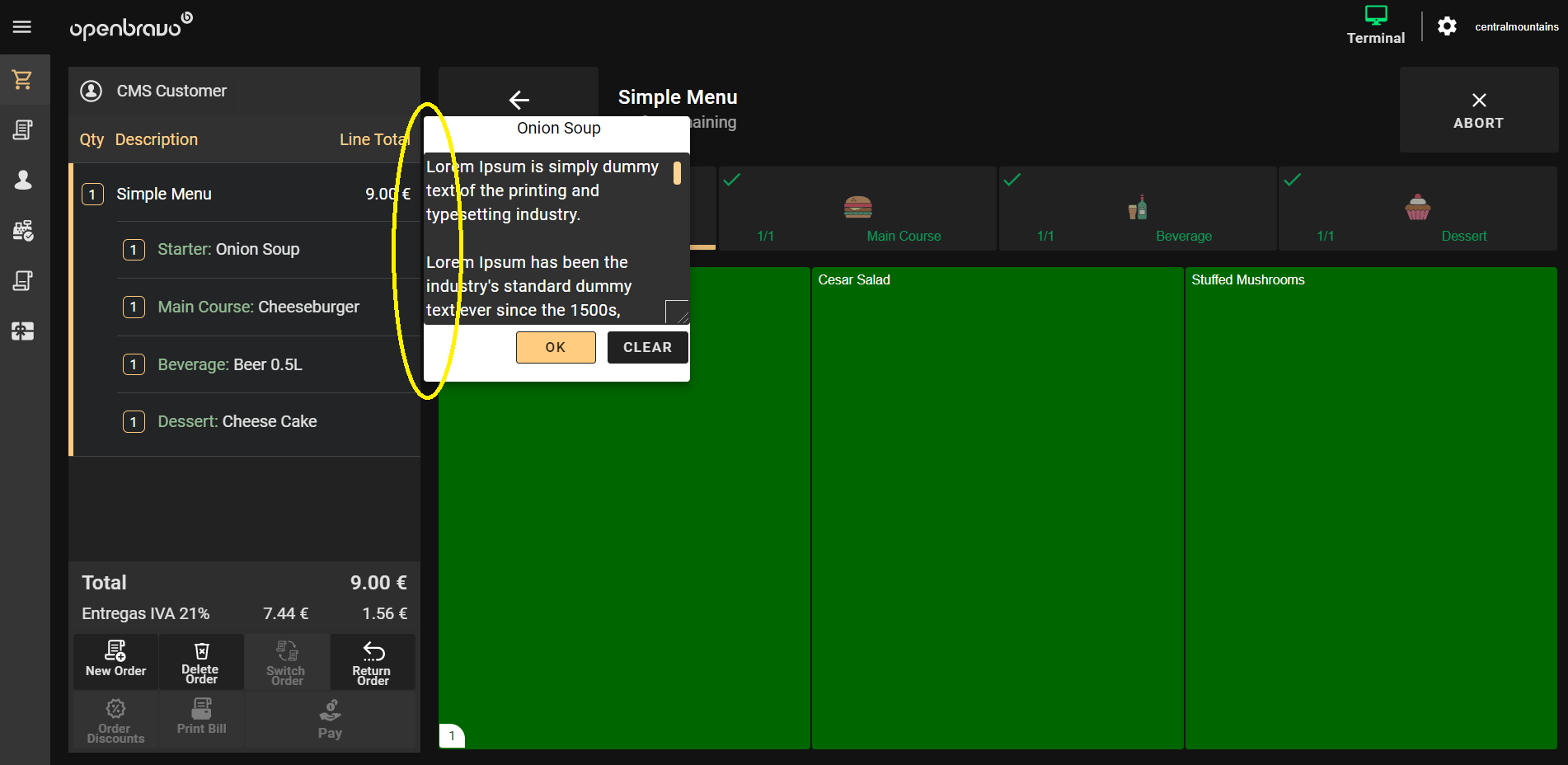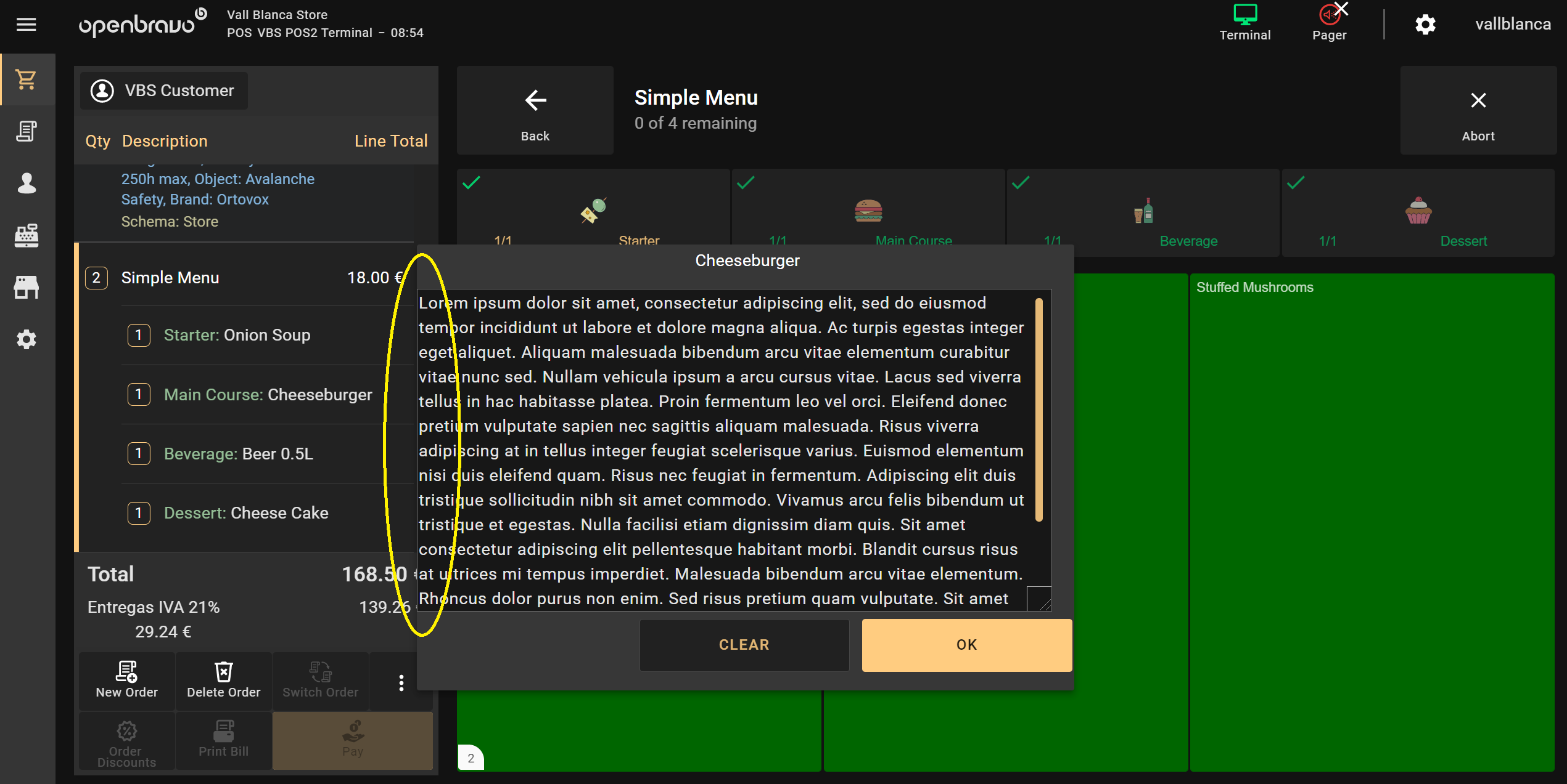 | Steps To Reproduce | 0-Login POS2 as vallblanca. 1-In Restaurant schema, click Menu and then Simple Menu. 2-Complete the aforementioned Simple Menu with any products. 3-Once the Simple Menu is completed and added to the receipt, click on the menu in the receipt and click in Starter: Onion Soup. A popup with "ADD/EDIT NOTE" button will be shown. Click on that button. 4-Write any text in that field and realise margins must be added. | |||||||
