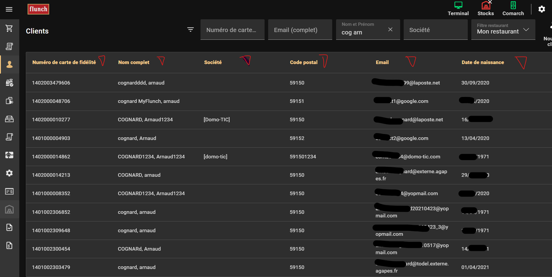 | Steps To Reproduce | connect to the pos click on 'Client' , fill a field to find several client You can not click on the column's header to sort (asc or desc) | |||||||||||