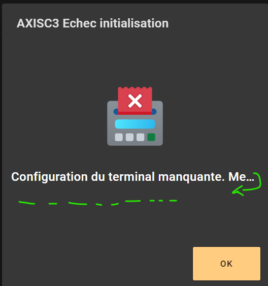 DescriptionWhen connecting / starting the till, a meessage appears if there is problem to connect Pinpad or Axis server.