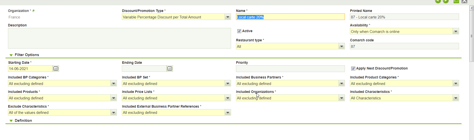 In both cases, a warning message appears at the bottom indicating you have to fill in a discount amount. So it is not possible to cancel the promotion in our ticket.