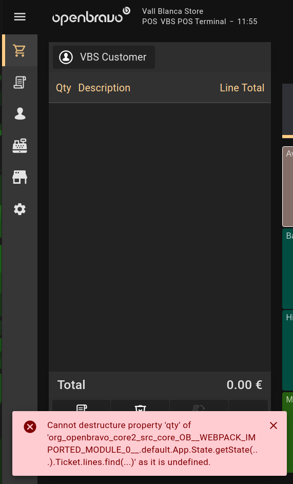 | Steps To Reproduce | 1) Login in the application in terminal VBS-1 2) Add a product (i.e. Avalanche Transceiver) 3) Click on the line and click on Qty input in the popover 4) Delete the Qty with the Backspace button 5) Click on OK button 6) The line disappears from the ticket 7) Try to add any other or the same product 8) An snackbar error is raised and it is impossible to add a product until the ticket is deleted(check error2.png) | |||||||