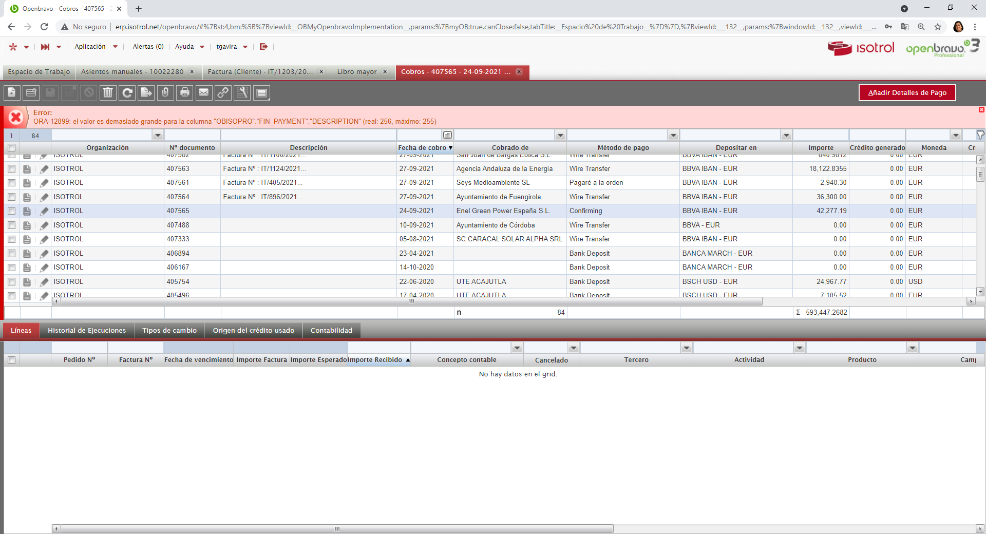 ERROR: ORA-12899: el valor es demasiado grande para la columna "OBISOPRO"."FIN_PAYMENT"."DESCRIPTION" (real: 256, máximo: 255)