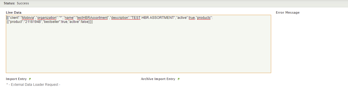 | Steps To Reproduce | Create an POST CALL like as follow : [ { "client": "Mobivia", "organization": "*", "name": "testHBRAssortment", "description": "TEST HBR ASSORTMENT", "active": true, "products": [ {"product":"21181948","bestseller":true,"active":false} ] } ] Verify in the Assortment Module, the property 'active' from the prodcut stay always to Yes | |||||||