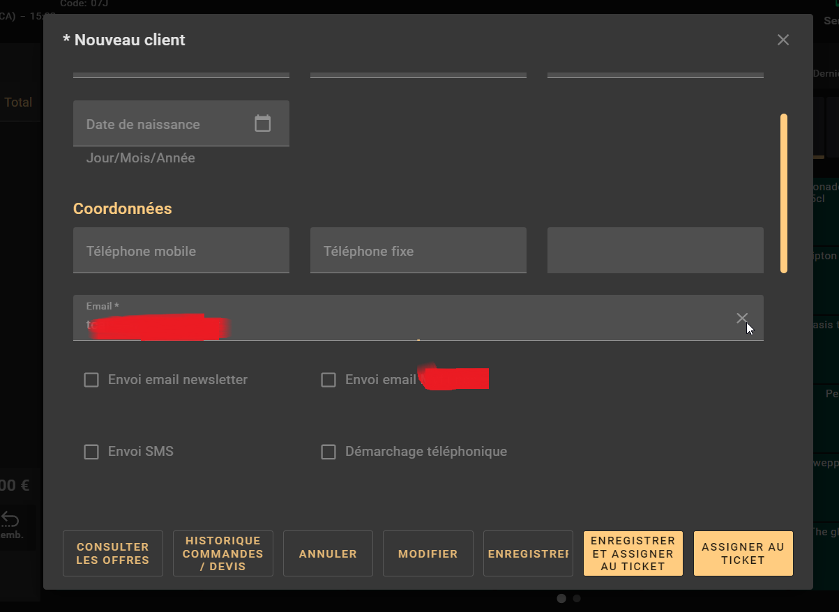 | Description | After filling in an email on new client screen if you want to delete what you have filled in it is necessary to press twice the cross at the right of the textbox. Moreover the first push display all the buttons at the bottom of the pop-in (cf. screenshot) | |||||||