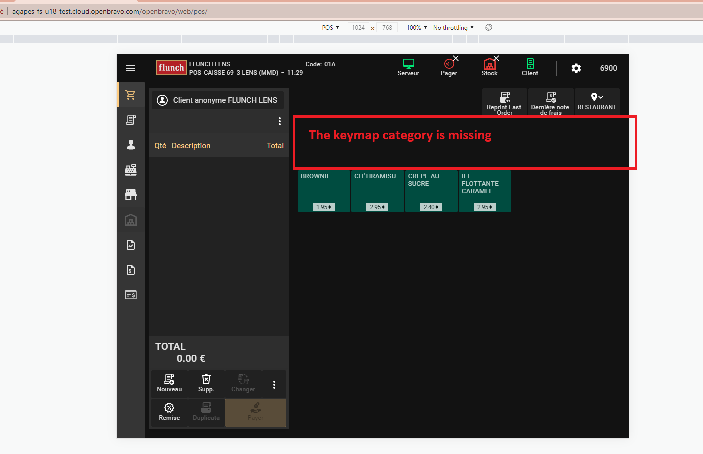 | Description | On WEBPOS, when I go to the screen sales, the keymap doesn't appear on my resized screen (1024x768) If the screen resolution is bigger (1920x1080), the keymap is appearing. | |||||||