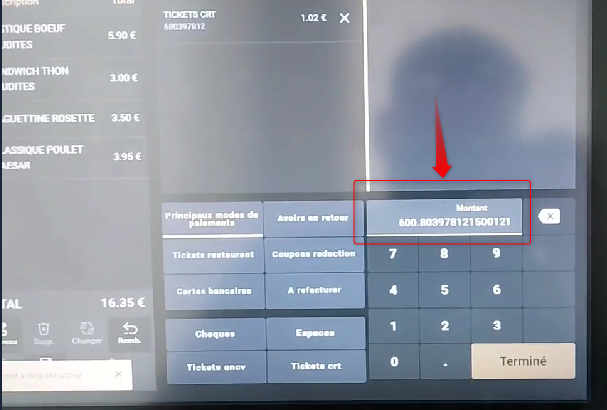 | Description | When i'm in POS, and i'm using a scan crt for an article, i would like the price to be dispaly on the amount field But instead i have the number of the scan CRT Exemple : Montant = 600.8039781515004121 ( code number of the CRT ) instead of : Montant = 1.09 ( price of the article ) The issues happen randomly | |||||||