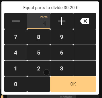 | Steps To Reproduce | Go to sales on WEBPOS Choose several products to add on receipt Go to payment and click on Split Check Choose Divide check in equal parts => the keyboard appears but the number of parts is not clearly displayed | |||||||
