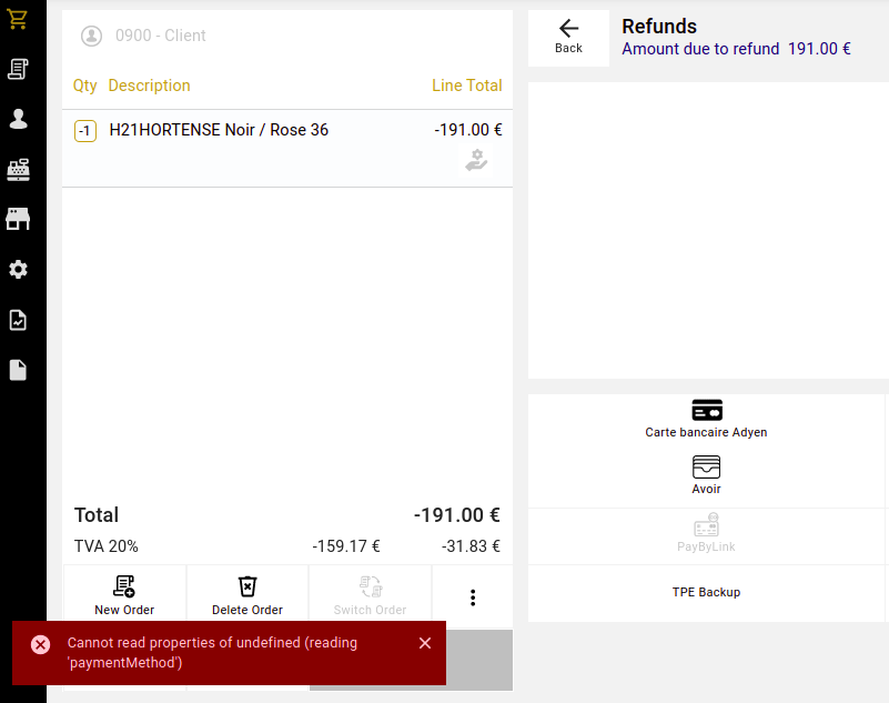 | Steps To Reproduce | 1) Create a ticket 1 in POS A for payment method A 2) in POS B, make sure you DON'T have payment method A 3) You can open Ticket 1 in POS B: but if you try to do verified return, you get an error JS, see image attached | |||||||