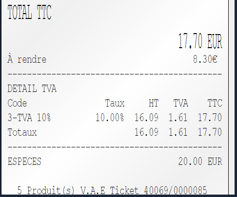 | Description | When there is cash change to print on the sales ticket, the amount of cash given to the cashier by the client is incorrect. We can see the same problem when printing a dematerialized ticket. Additional information : → for this kind of transaction when you print a duplicate ticket, there no issue, the amount of cash is correct. | |||||||