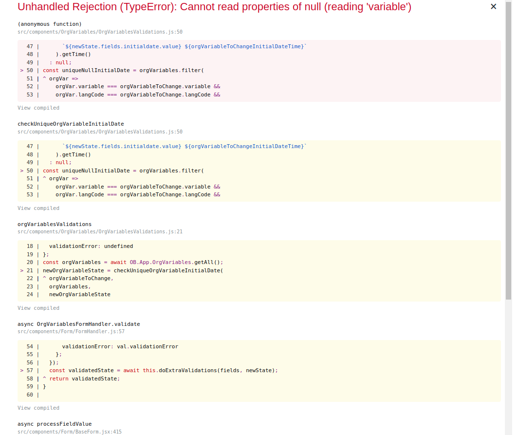 | Summary | 0048760: [Organization Variables] Unhandled rejection error when introducing an incorrect date & cancelling | |||||||