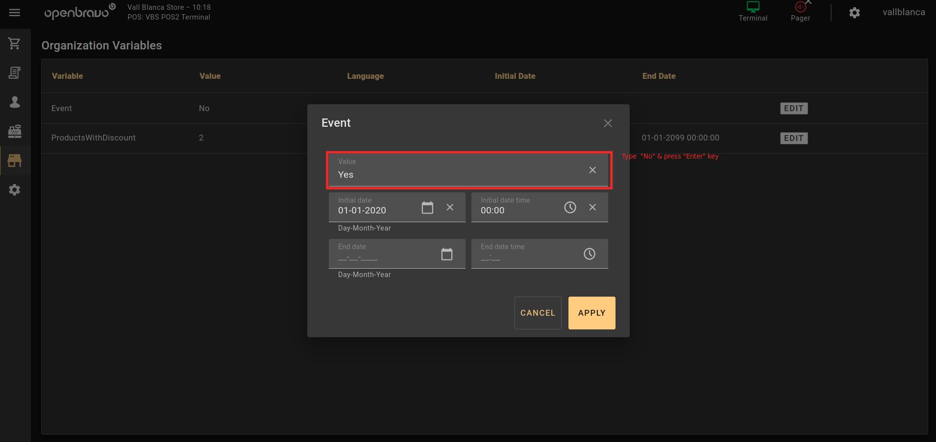 - From ERP (Backoffice), create at least one organization variable (https://docs.google.com/document/d/1tuGxwiNnThguqkrSfUmv9gktmdjdlWmcIkbTPUhVV3g/edit#heading=h.j4aw0a6eq09p [^] [^])