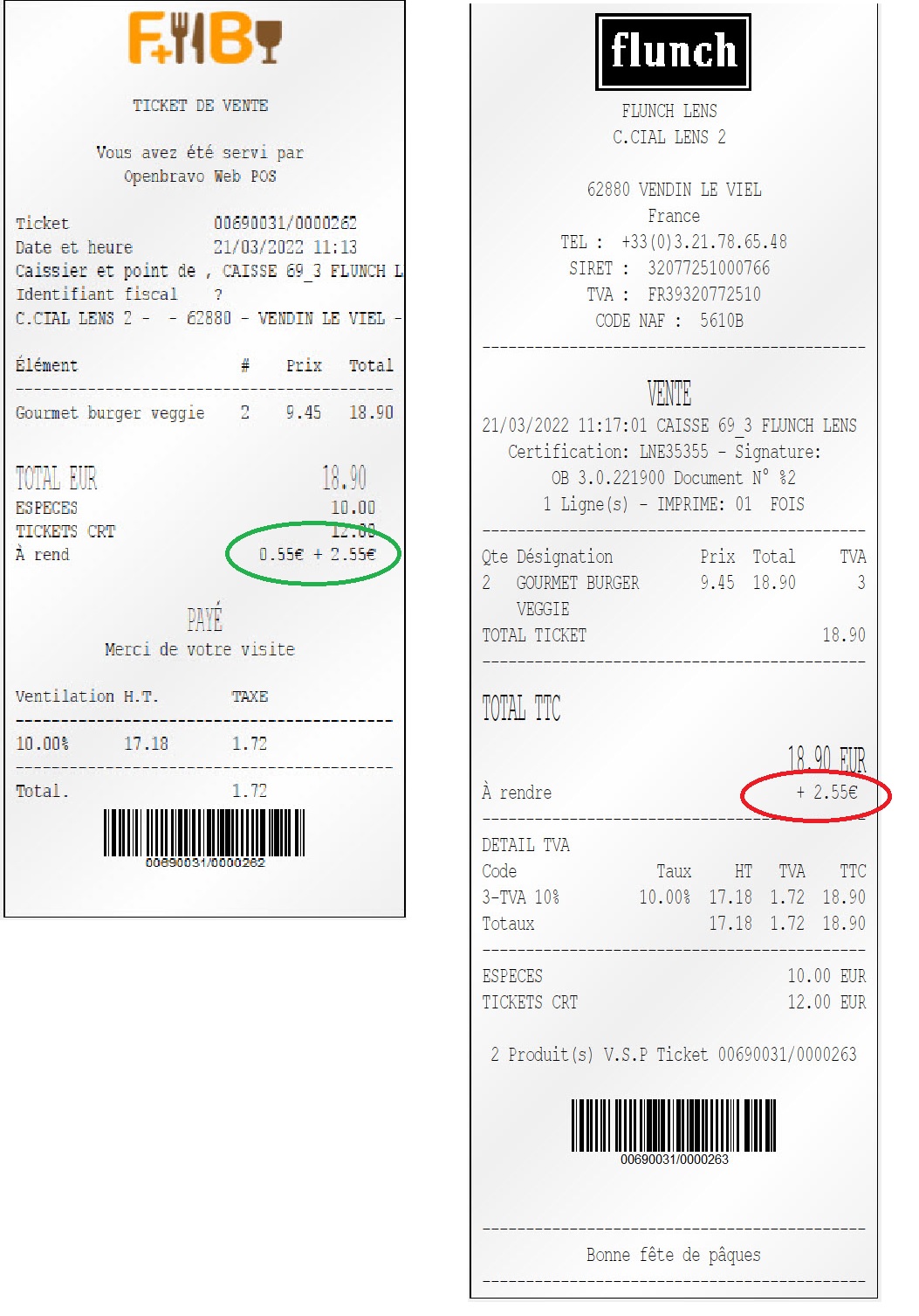 | Description | When a ticket is split, the receipt printed desn't take into account the change return made. It works with the default template. So, we have to udpate the customer template. | |||||||
