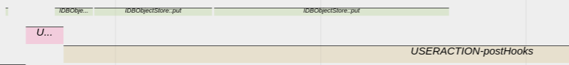 | Steps To Reproduce | See attached image, it showed what happens when a user action is executed. The pink box on the left is the state action that triggers a state persistence (green long boxes) in 10ms. Right after that, posthooks are executed, and the execution of its queries are delayed until the state persistence finishes. We want the persistence to take place outside the user action context | |||||||||||