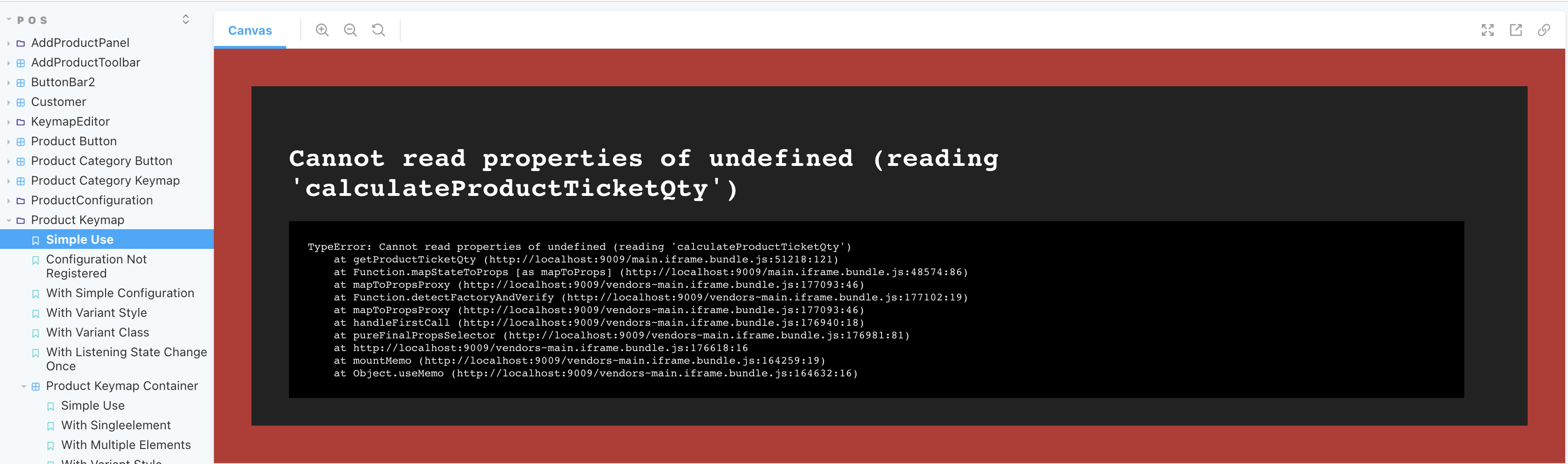 | Steps To Reproduce | - Go to live builds - In module section, go to storybook - Search "Product keymap" - Check the error "Cannot read properties of undefined (reading 'calculateProductTicketQty')" | |||||||||||