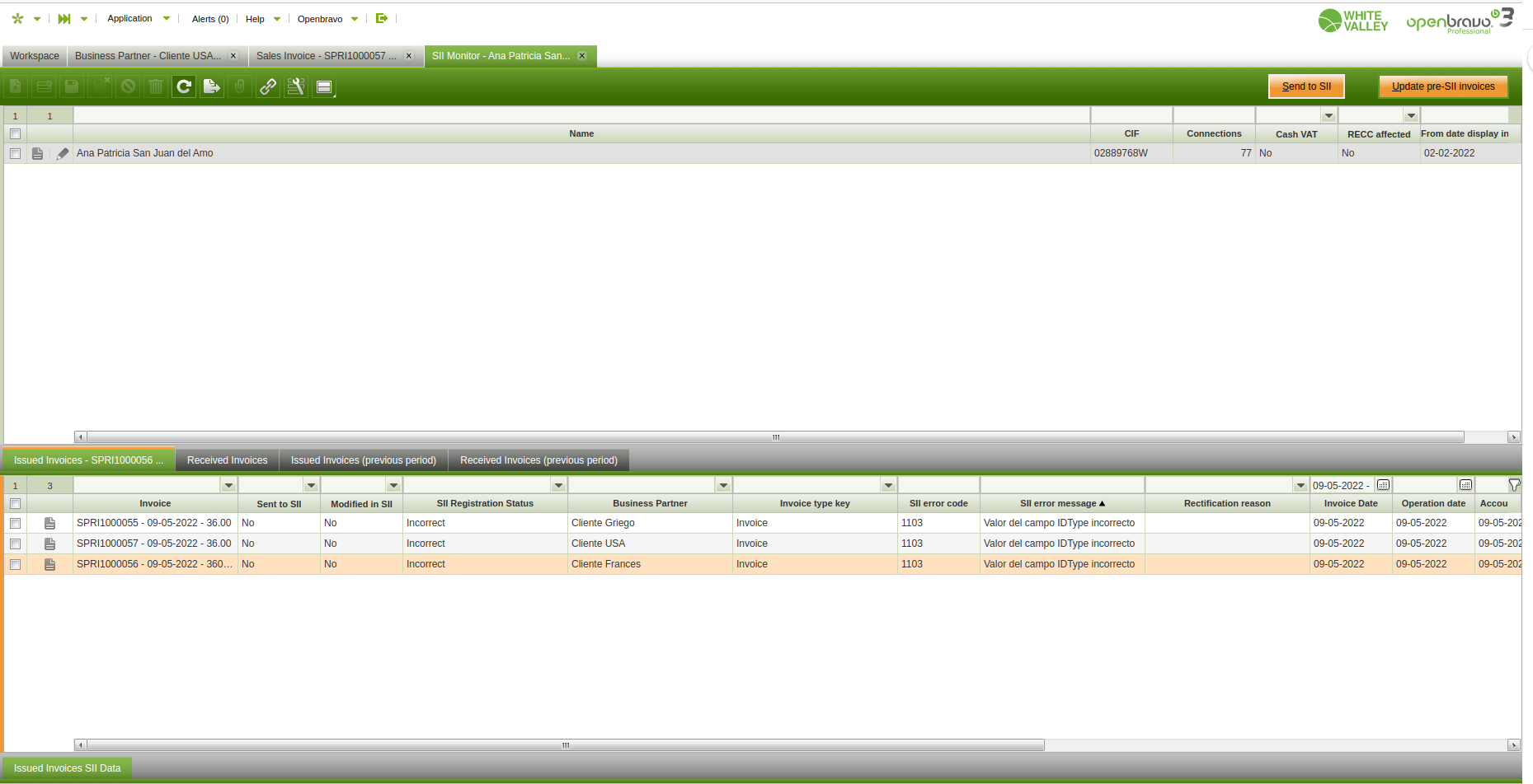 8. Register new sales dated on 5 days ago, and try to send them to SII. Verify that the same error is shown.