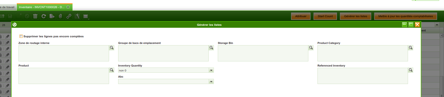| Steps To Reproduce | 1) Install the modules Advanced Warehouse Operations + the translations modules + french localization pack 2) Login in the backoffice 3) set the language to french 4) open the window example: Inventory count 5) Click on the button generate list 6) As you can see core labels are not translated like product. Check image attached Note. The label product are properly translated in other window (like Sales Order tab lines) Note 2. On the install.source the labels are properly applied. But is not possible to update them. With below steps the translations are properly applied. 1)delete from ad_element_trl ; 2)delete from obuiapp_parameter_trl ; 3)compile with ant update.database -Dforce=yes apply.module -DforceRefData=true compile.complete.deploy That's reinforce the fact that something weird happen when the translations are updated. | |||||||