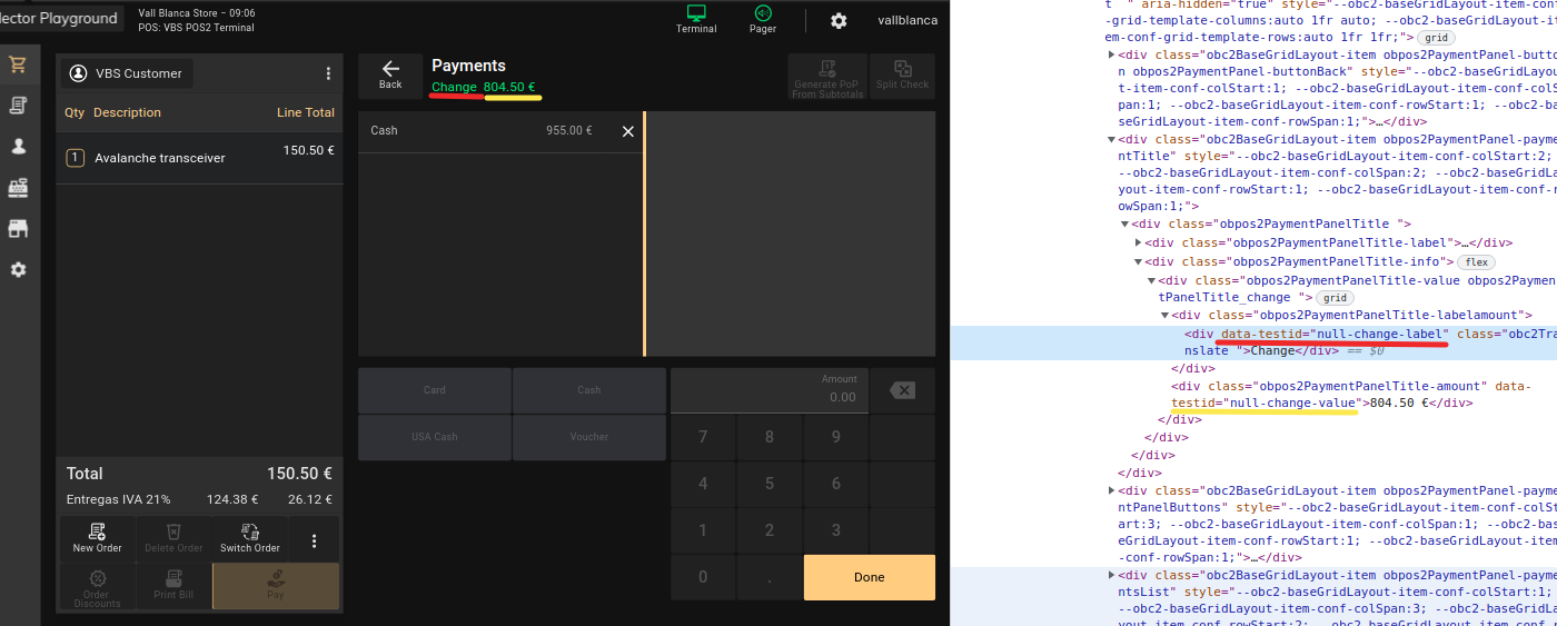 | Steps To Reproduce | - Log in POS - In Store window, add 1 "Avalanche transceiver" to ticket - Click "Pay" - On Keypad Input, type "200" - Click "Card" as payment method - Notice top label which notifies about overpayment - Open developer tools & Observe data-testid for the red label | |||||||||||