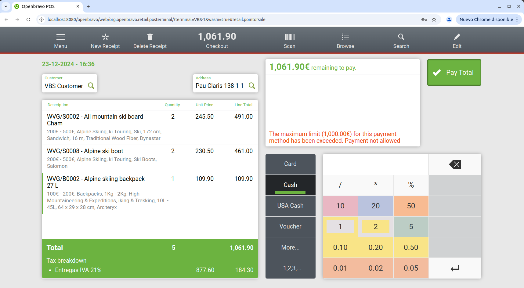 | Steps To Reproduce | On backoffice, check your POS Terminal Touchpoint Type On Touchpoint Type, go to Payment Method Open "Cash" And define a Max Limit Amount of 1000€ Log in on POS Create a ticket over 1000€ Try paying for it in Cash We can pay altough a limit has been defined | |||||||||||