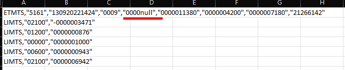 | Description | ETMTS,"5161","240820220908","0008","0000null","0000026239","0000007009","0000019230","24979072" => The serial number of the report is wrong ("0000null") | |||||||