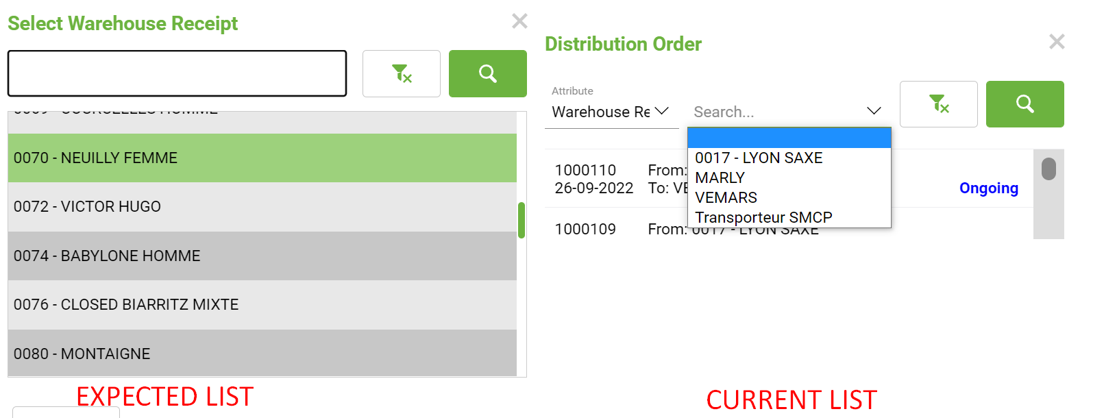 | Steps To Reproduce | Log in on AWO Select Distribution Order Change the filter to "Warehouse Receipt" Only 4 warehouses are available | |||||||