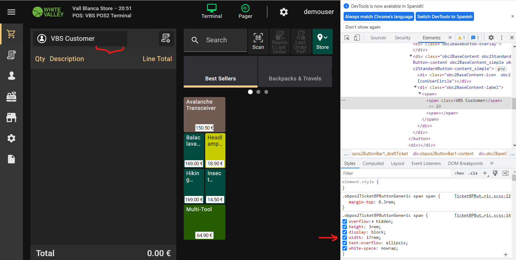 | Description | On the selling screen, at the header of the ticket, the customer name has an excess of space on the right Probably it is because it has a fixed width to 17rem. | |||||||