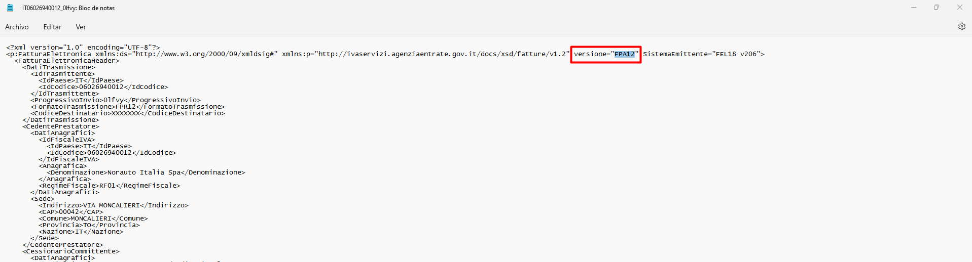DescriptionIn the header of the invoice (see line 1 of any e-invoice XML file) we are informing an incorrect value in the 'versione' property. Always we are doing and invoice for a B2C/B2B customer, the expected value there is FPR12 and we are setting FPA12 (expected only for B2G, and currently out of the scope).