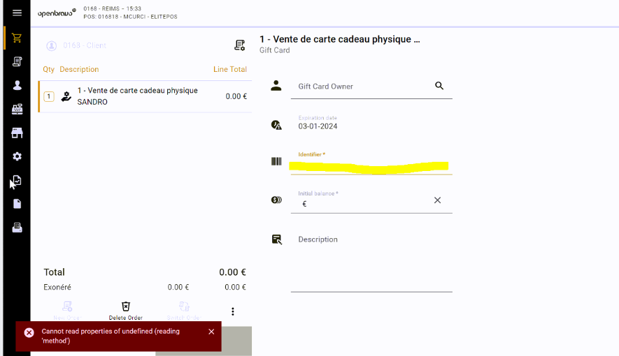 | Summary | 0051284: When buying a gift card, If we scan the barcode for the identifier, the code is not filled | |||||||