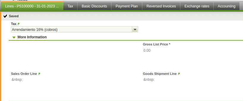 | Steps To Reproduce | 1. Go to sales invoice window ans create a new record 2. Create new line 3. In form view, go to more information section in the new line and see sale order line and good shipment line filds have "" " text instead of being empty. | |||||||