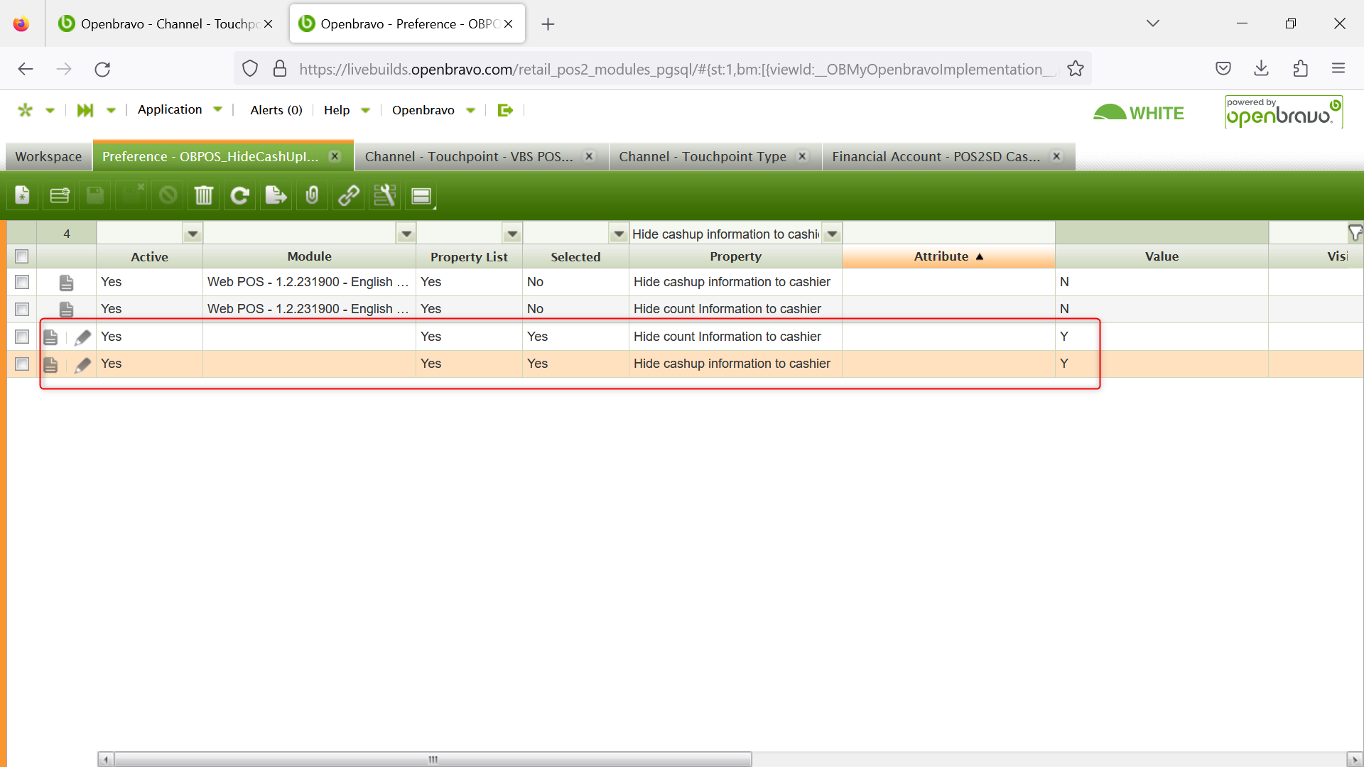 Steps To ReproduceIn backoffice, create new preferences 'Hide count Information to cashier' and 'Hide cashup information to cashier' = Y (see BO Hide Y.png)