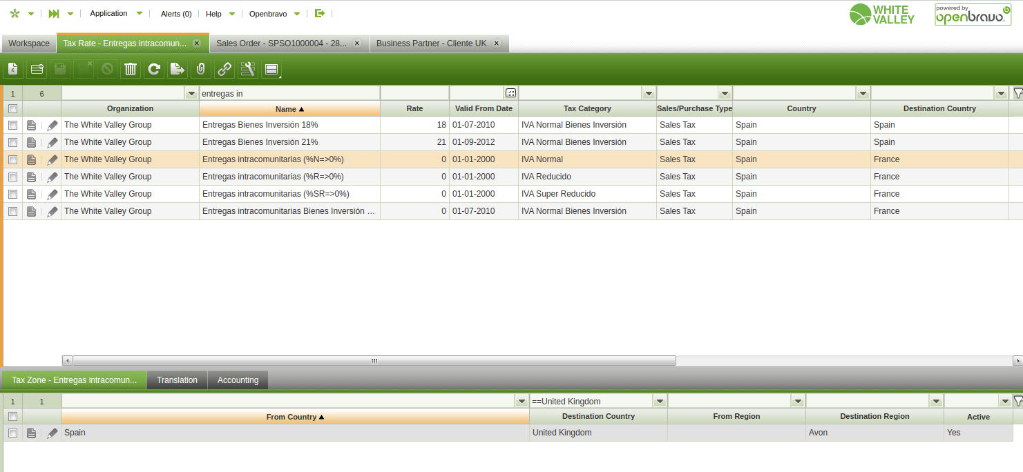 Hello Axel, Please attached 2 images in which we can see the full set up of these two tax rates. Let us also know the OB version, and the customer being used (setup of the customer, mainly location). thanks, Patricia. |