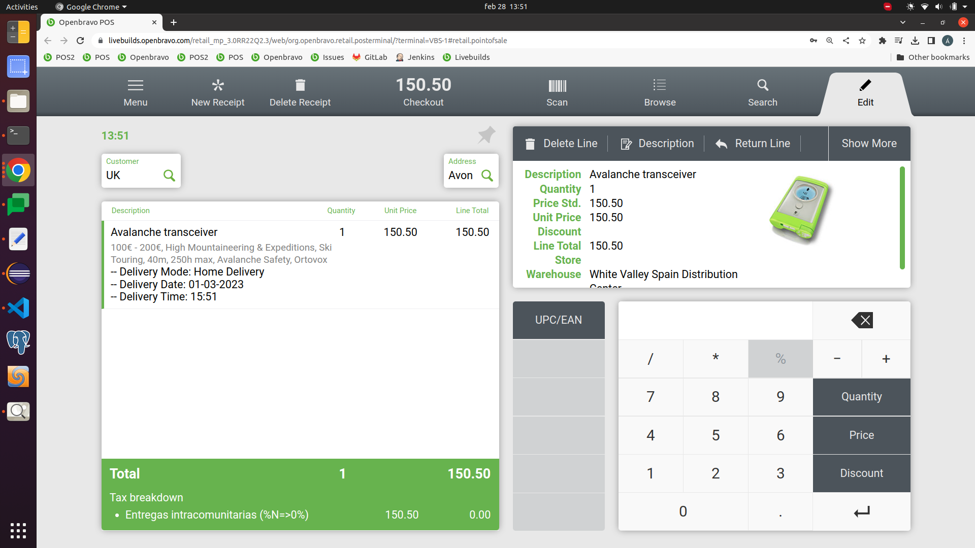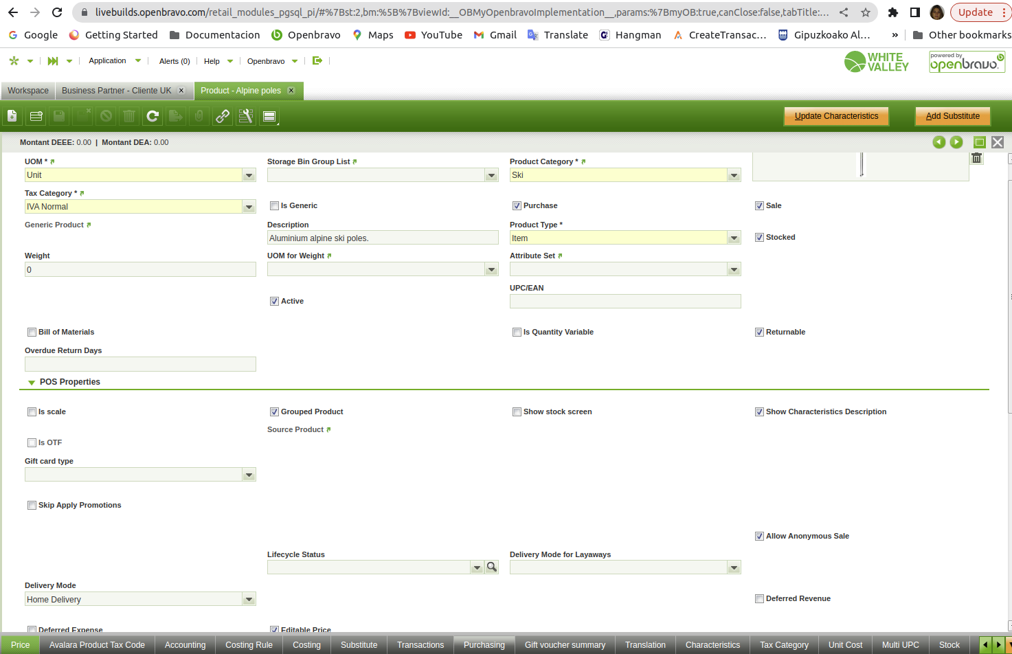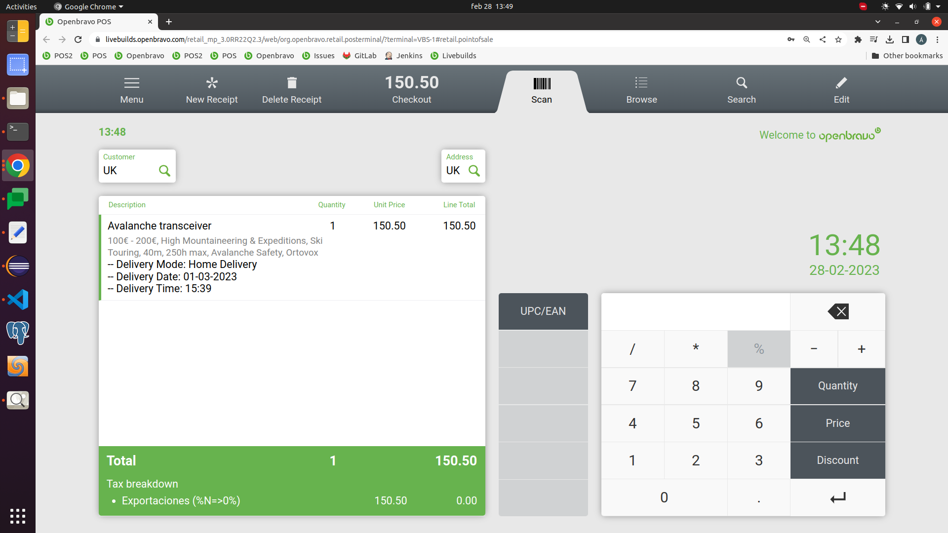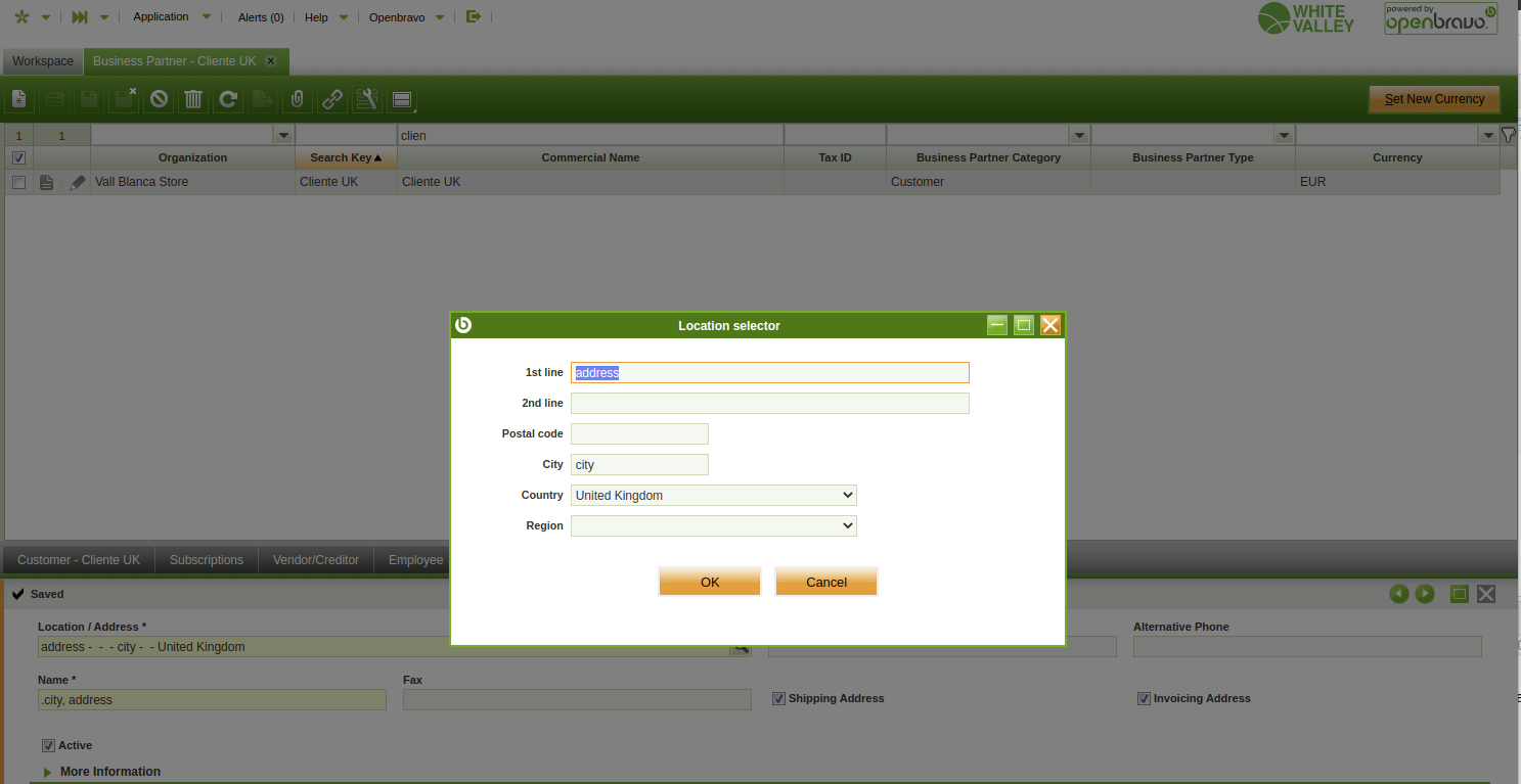Steps to reproduce: - configure a tax rate (1=Exportaciones) that includes Spain as From Country and UK as Destination country with no Destination Region. - configure a second tax rate (2) sames as above one, but just adding a Destination region "Avon" (of UK). -Create a BP located in UK with no region. - Create a Sales in the POS for that UK customer, Delivery Terms = Home Delivery, verify that both tax rates (1) and (2) are selected. This is not correct as in this case the one without region should have been taken into account as the BP does not have a region. Moreover, If a region is configured in the BP, the POS selects the proper one, but as the POS does not allow the creation of BP with Region, if two tax rates apply one with region, and another one without, the one without region should be used. |