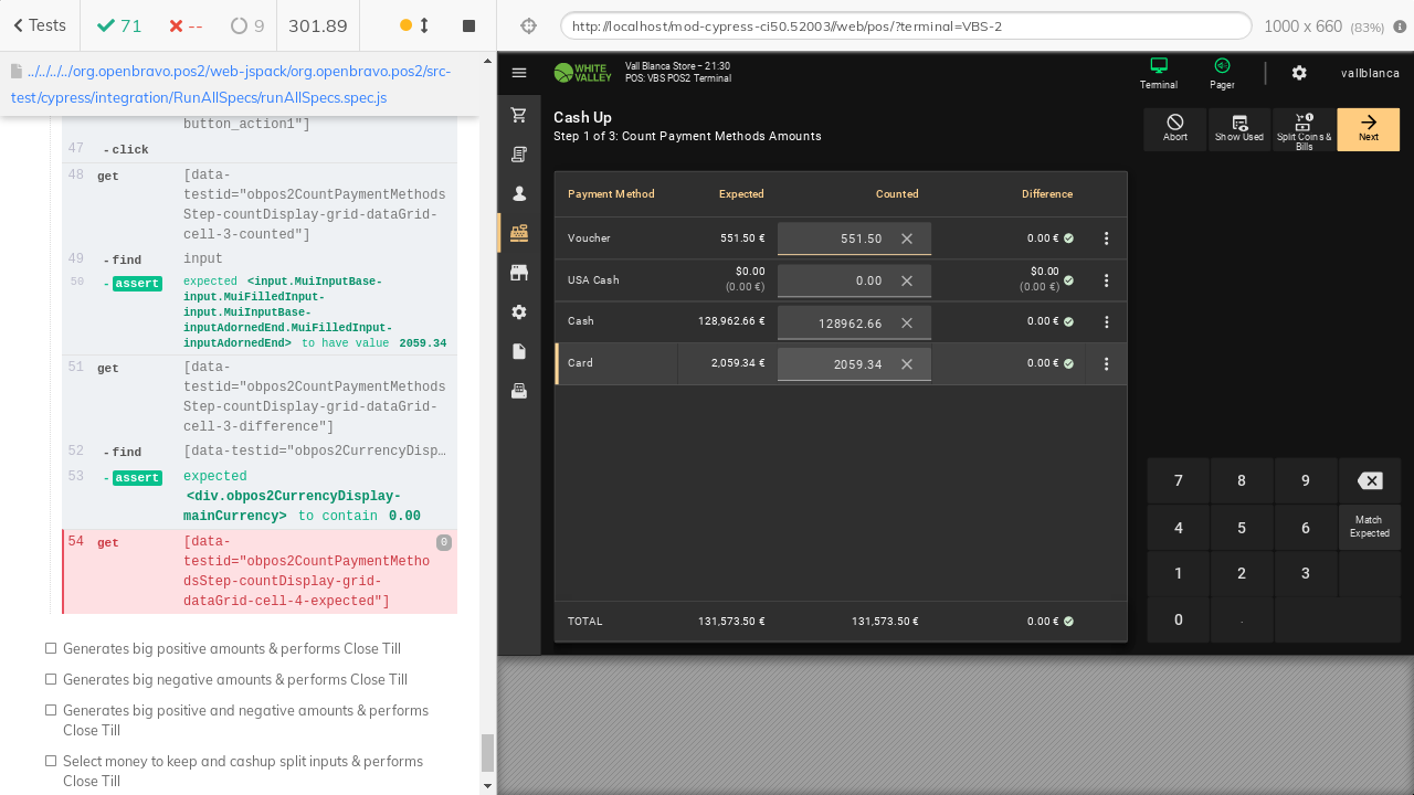 | Summary | 0052090: Cypress tests fails when closing Till due not all payment methods are being taken in account when cash up | |||||||
