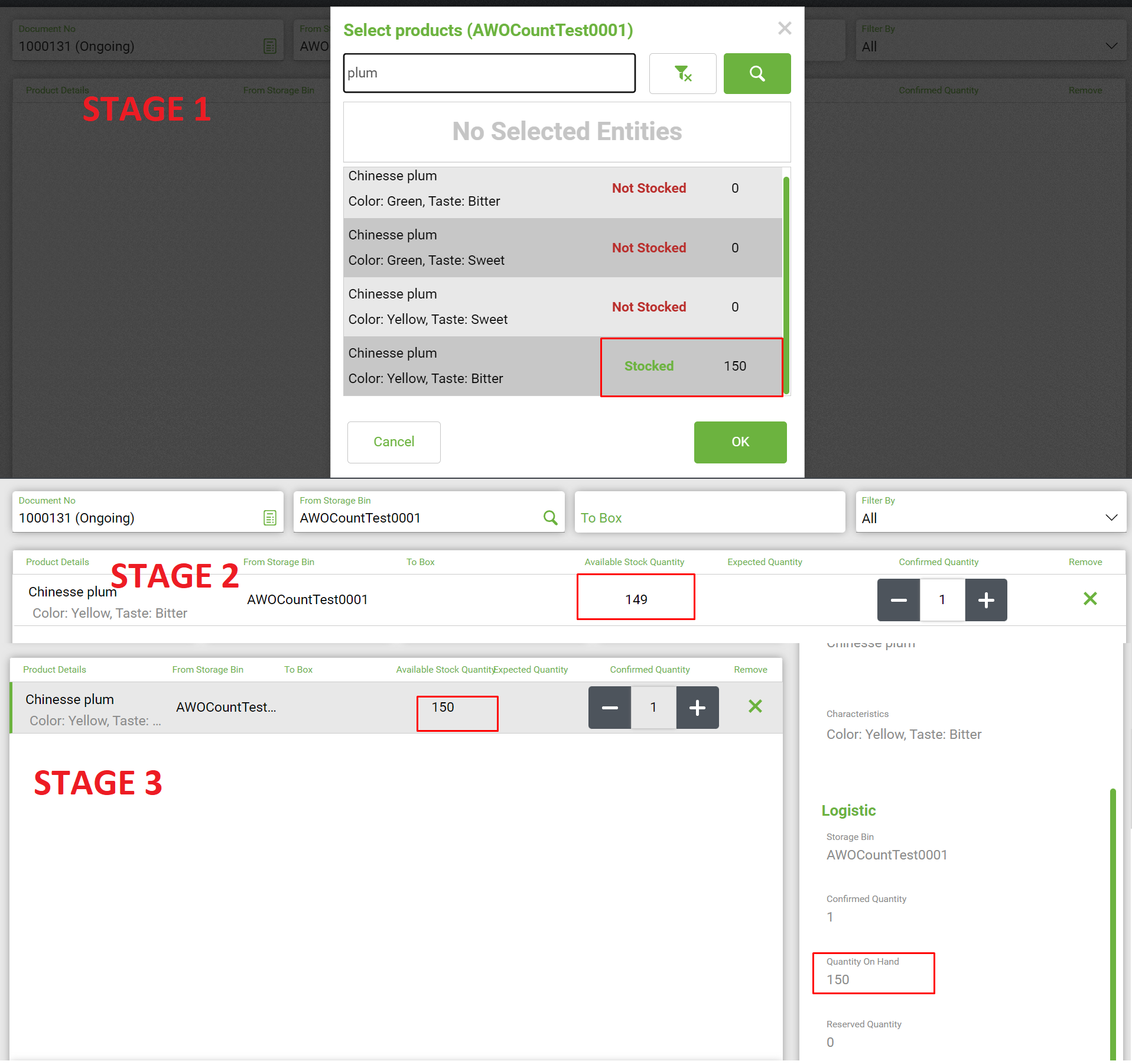 | Summary | 0052382: Available stock is moving when doing a DOi | |||||||