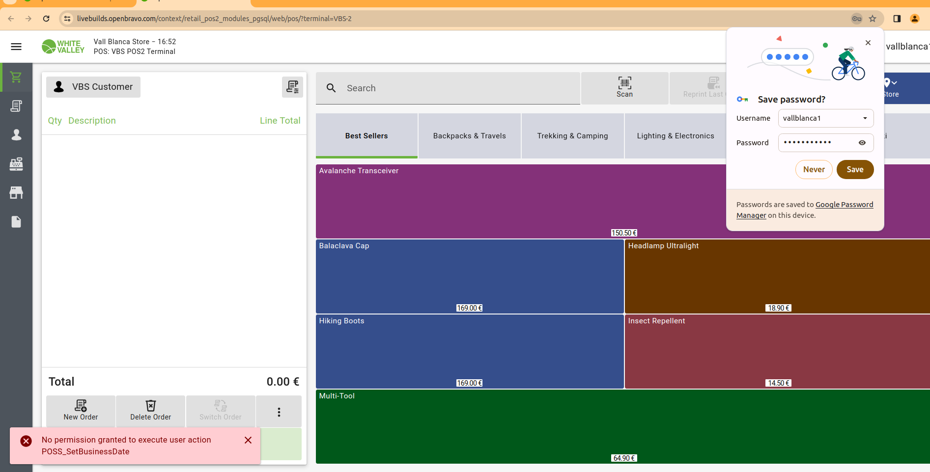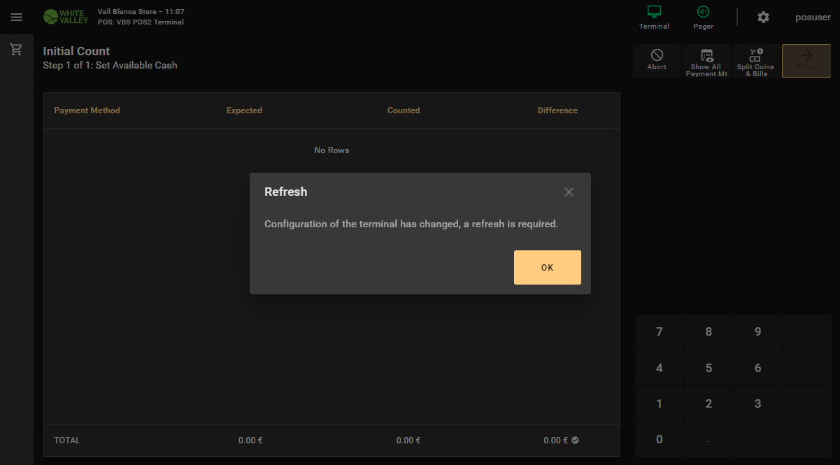 | Description | The login of a user with a misconfigured role generates an error message that is not correct. Case A: The role is missing the "SwitchToMainWindow" user action ==> The message says that the action missing is "SwitchCurrentWindow_OBPOS2_MainWindow" Case B: The role is missing the "SwitchToInitialCountWindow" user action ==> The message says that the action missing is "SwitchCurrentWindow_OBPOS2_InitialCountWindo" Case C: The role is missing the "Validate Cashup and advance to next step", "Finish Initial Count" or "Standard Initial Count" ==> There is no error but the application fails to start | |||||||||||