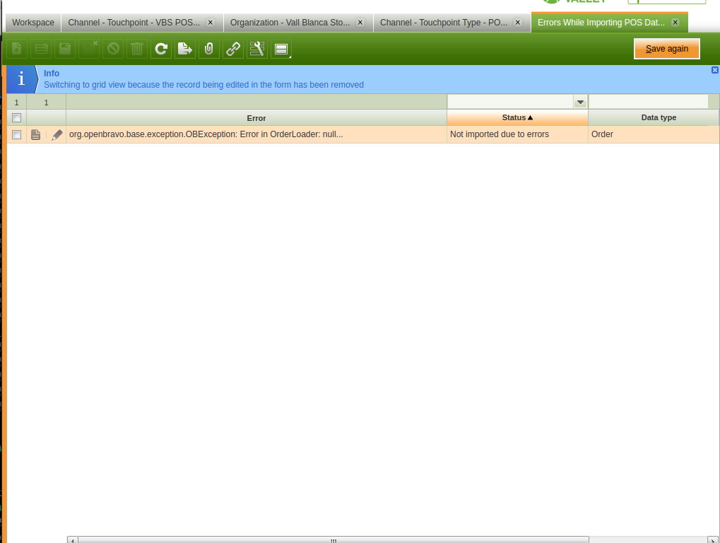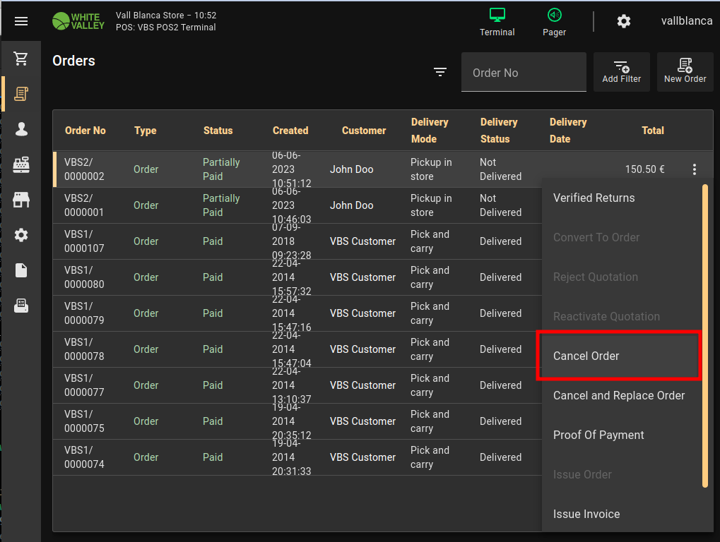 | Steps To Reproduce | 1. Configure store to allow prepayments 2. Create an order and prepaid it (See: Ticket.png) 3. Go to the list of sales, on the line corresponding to the order you previously created, select the "Cancel Order” option (See: Ticket-Open.png) 4. Then when you are on the ticket view and before confirming the cancellation, delete the ticket displayed by the option “Delete Order” (See: Ticket-Delete.png) 5. You go to the Backoffice and you open “Error while importing window”, you can see an order import error (See: BO-Error.png) | |||||||