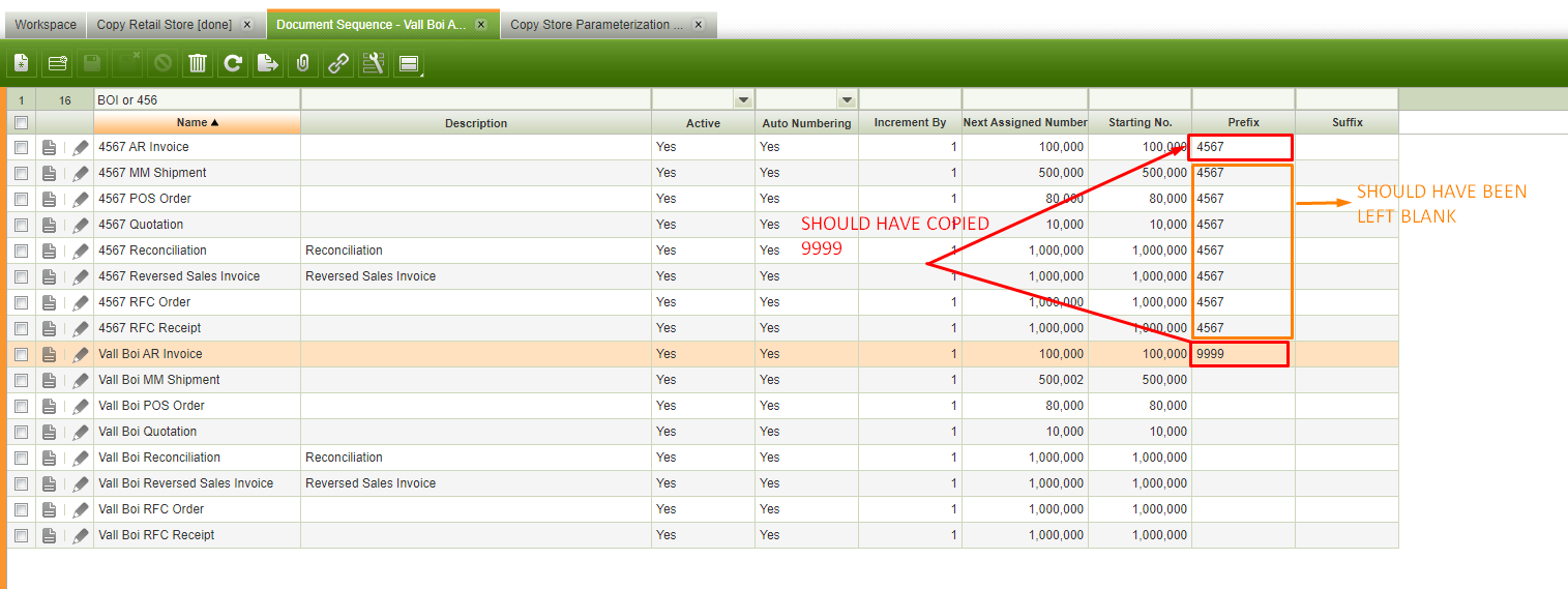 | Description | If a Document Sequences has NO prefix on the original Document the prefix on the new document should be empty. If a document Sequences has NO search key on the Prefix then the original Prefix from the original Document Sequence must be copied. | |||||||