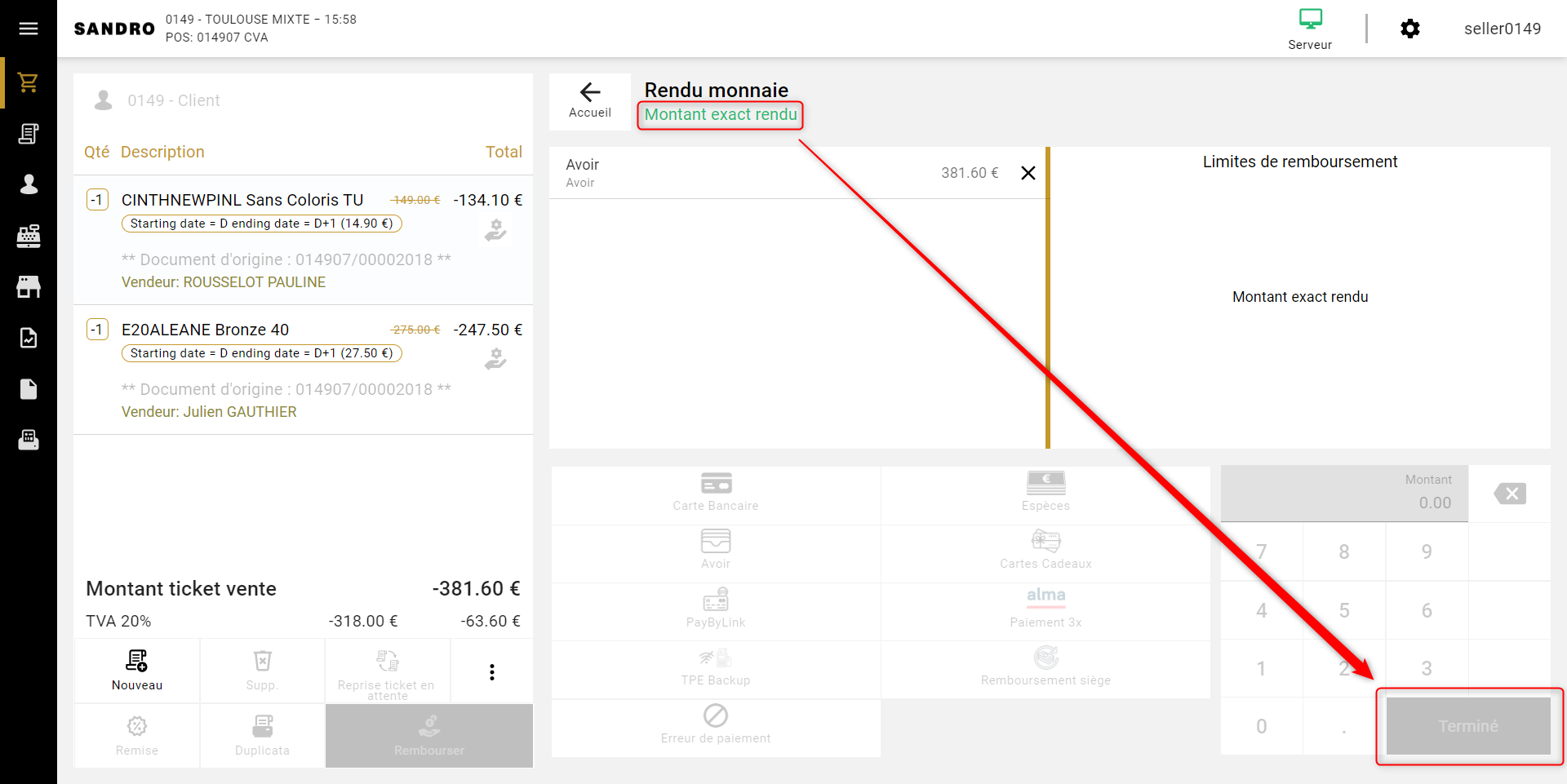 The payment method is well added in the list of payment methods with ‘Exact amount refunded’ displayed but