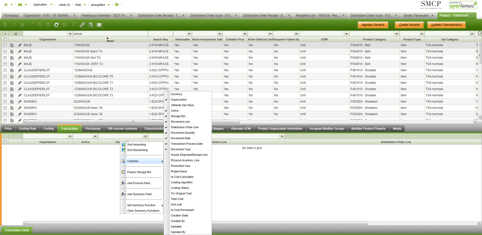 | Description | Add warehouse field and filterable in Product > Transactions window https://openbravo.atlassian.net/browse/RM-6476 [^] | |||||||
