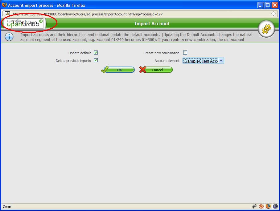 | Steps To Reproduce | 1. Go Master Data Management > Import File Loader 2. Import an Accounting file 3. Go Import Account, choose a record and click on Import button 4. The import window is displayed, note the broken image on top left, just where the Openbravo logo is. | |||||||