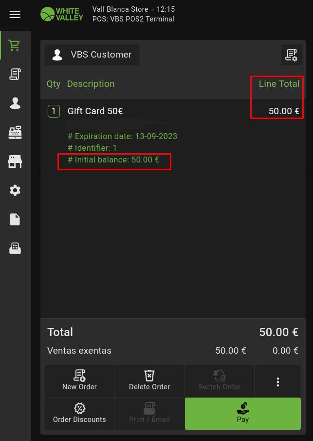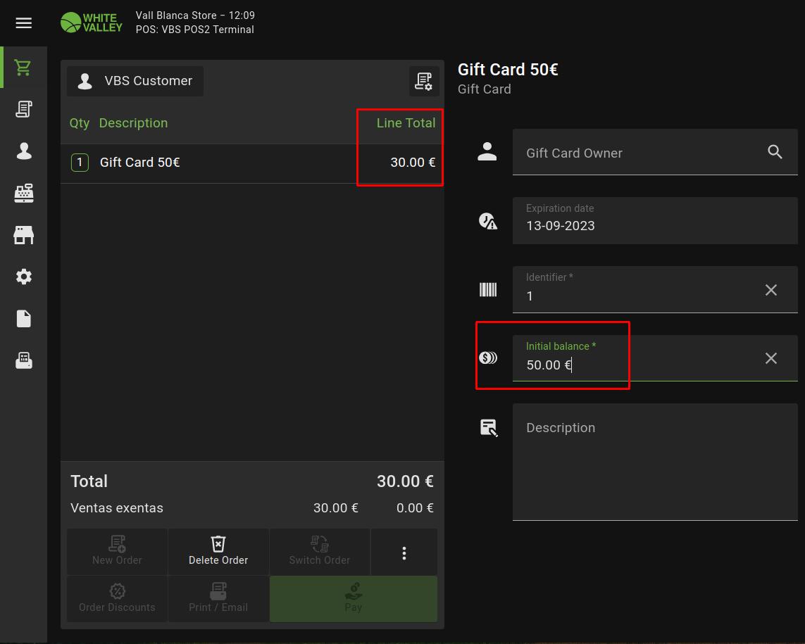 0053421: The price of the Gift Card is changed to the amount of the Initial balance when selling it