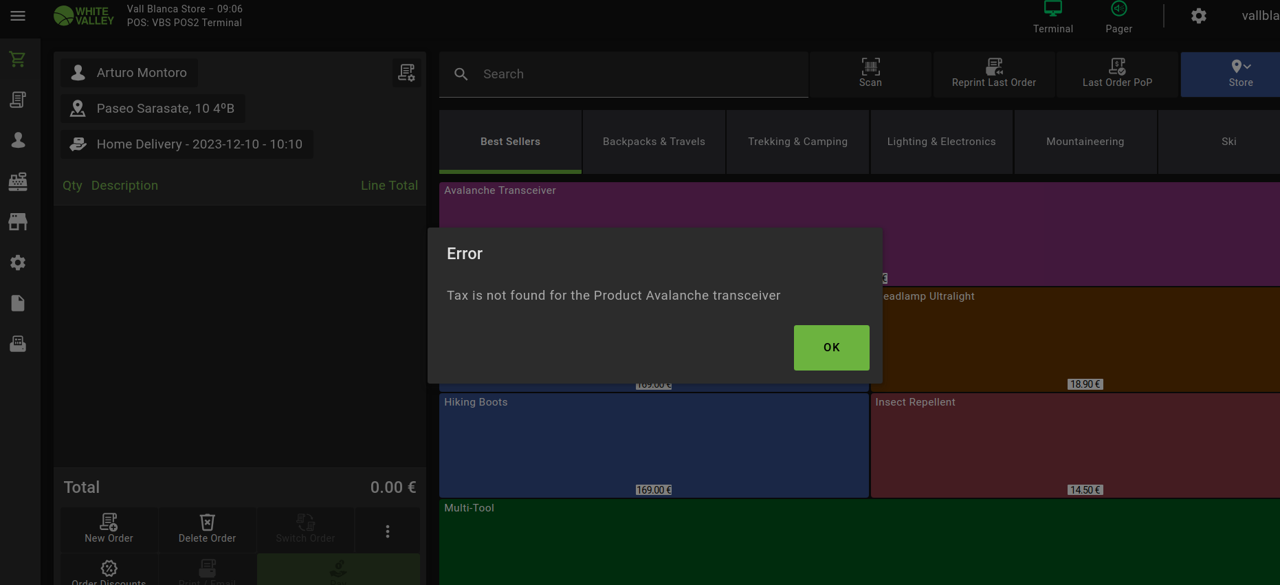 0053445: Error Message about tax is not found for products if ticket has a BP and Home Delivery