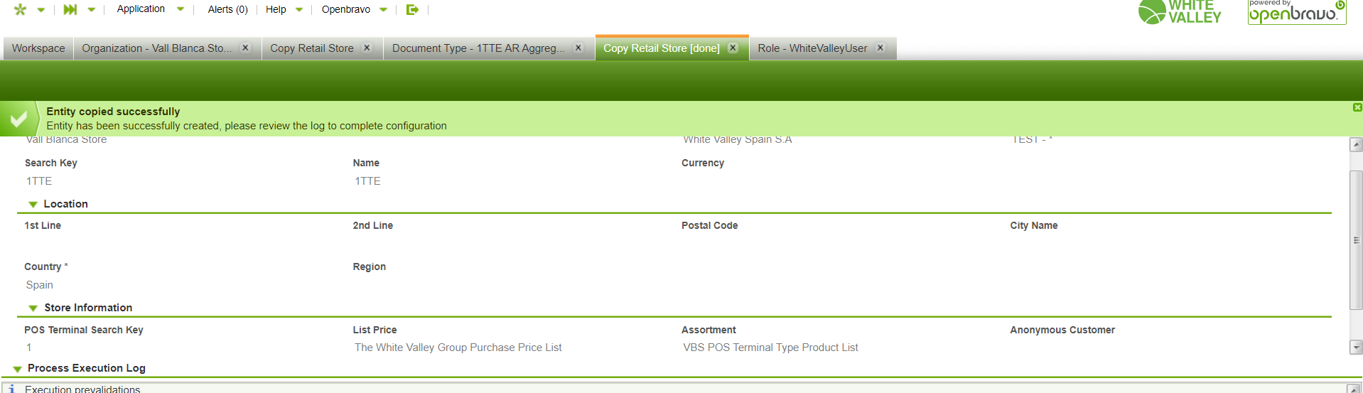 2.Go to Copy Retail store and use Vallblanca to generate a new store(see values entered in attachment).